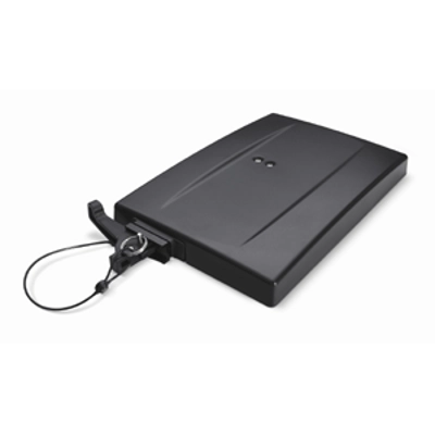 - Upper and lower plates include slots for securing with a padlock (not included)